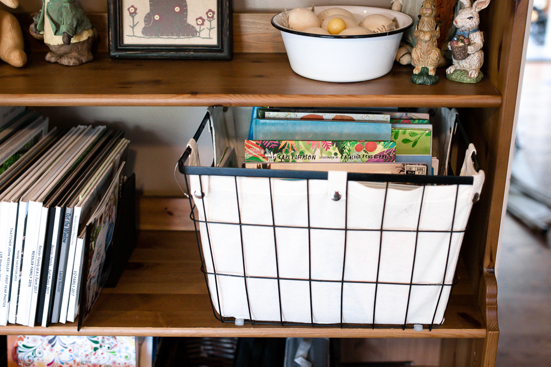 At the beginning of each season, I bring the box of books for that season out of storage. I like to transfer the books into a basket that I keep on the bookshelf in our living room.  You’re welcome to keep your books right in your labeled box, of course!  I simply use a basket for decorative purposes.  As you pack away the books from the previous season, take note of which ones you didn’t like as much, or which ones your children weren’t really interested in. You can always donate books that you don’t want anymore to your local thrift store.