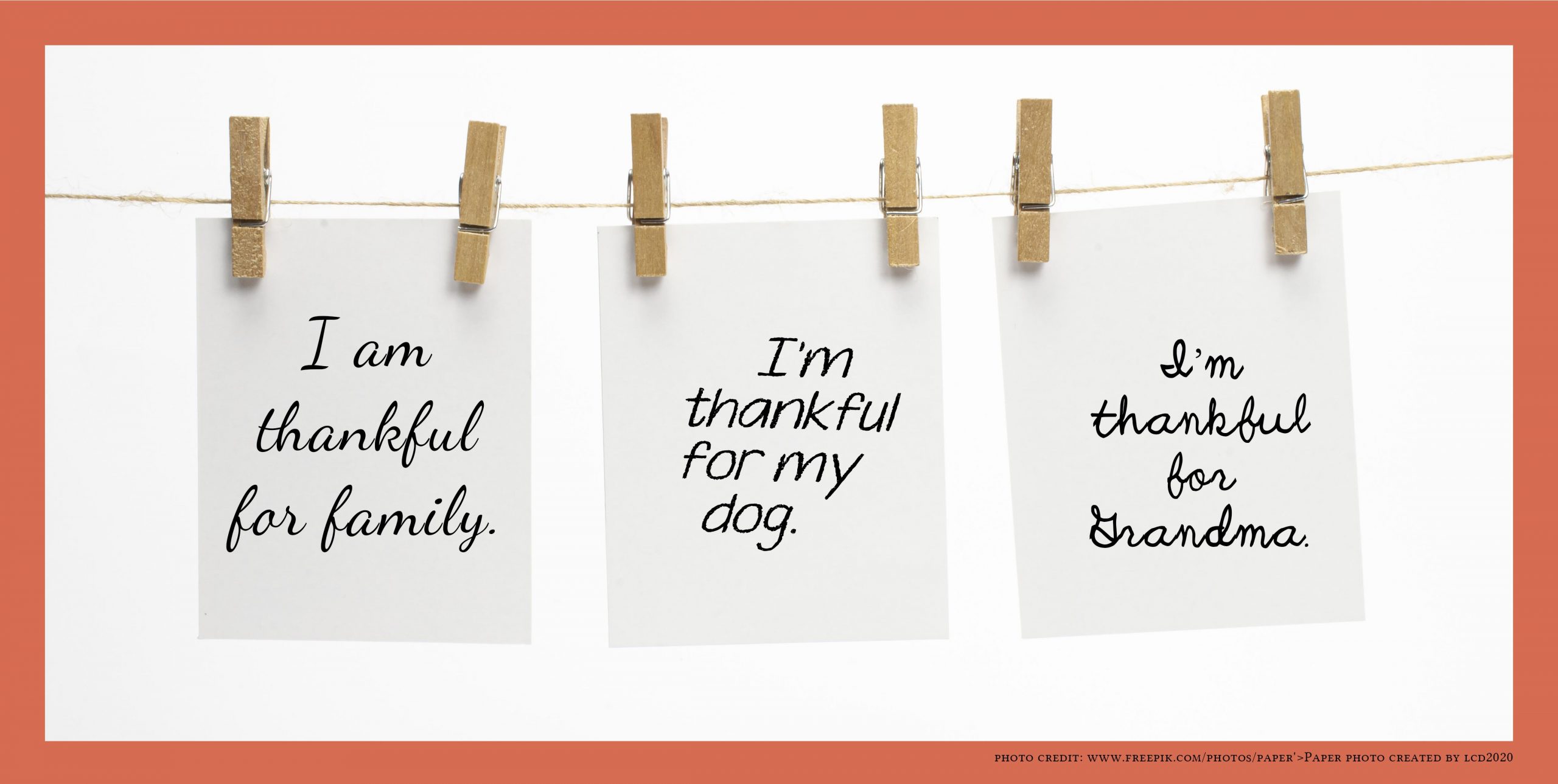 This is similar to the thankfulness jar, but instead of putting your slips of paper in a jar, hang a rope or ribbon across a window. Everyone in the family can draw or write things they are thankful for, then clip them to the ribbon using a clothes pin or paper clip.